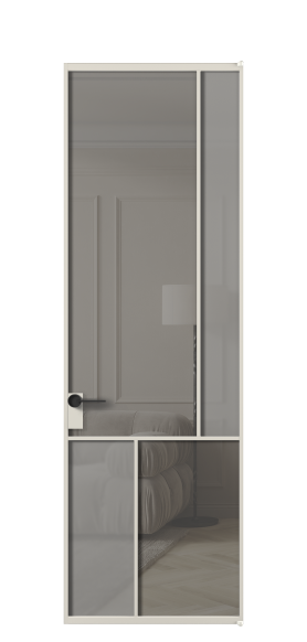 Лаконичный разделительный профиль внутренней раскладки полотна обеспечивает эстетический внешний вид конструкции и идеальную стыковку вставок из стекла.
