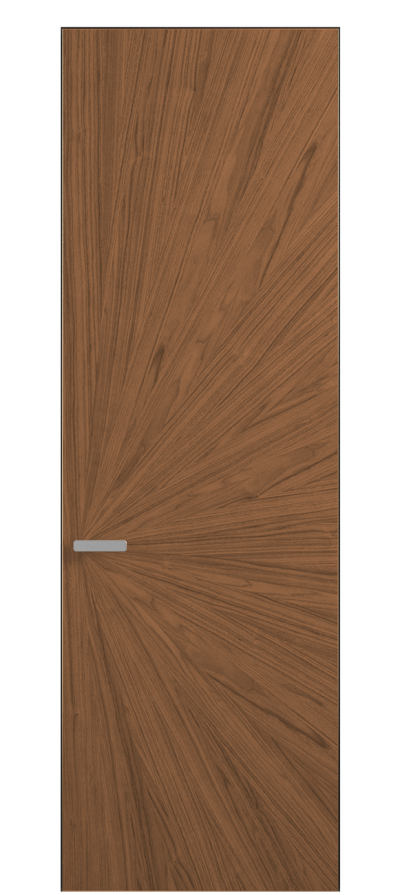 Полотно Рифт в скрытом алюминиевом коробе становится полноценным элементом декора. В коллекции представлено 9 моделей дверей в высоте до 3 метров. Рисунок раскладки шпона варьируется от простого до сложного. «Рубашка» для каждого полотна подбирается вручную по цвету, текстуре и фактуре.